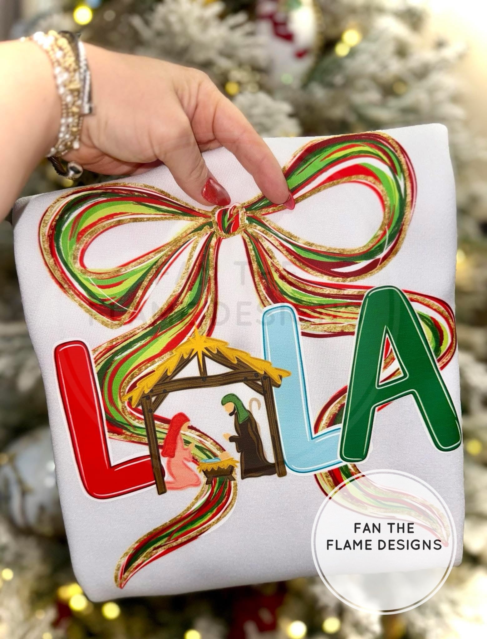 Personalized Girl Nativity with Bow Name Short/Long/Sweatshirt