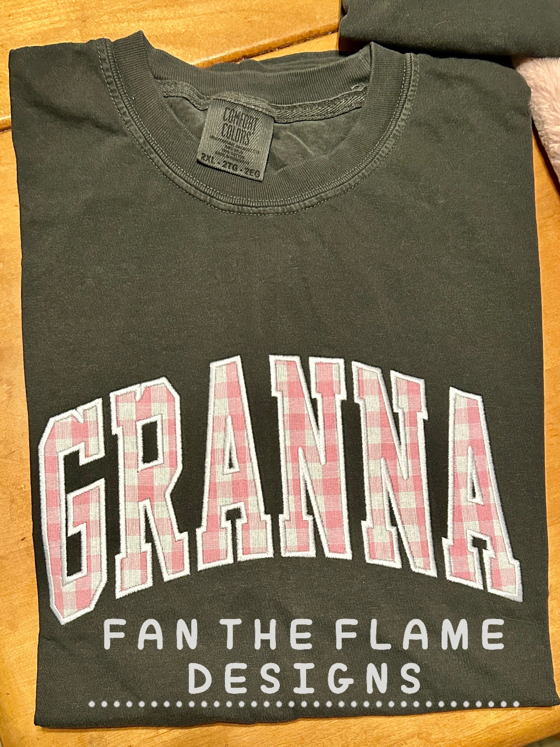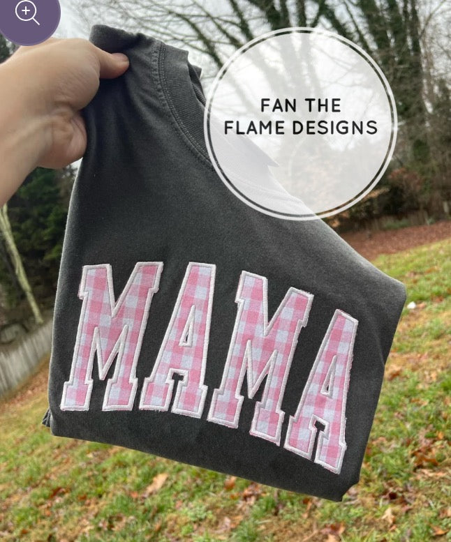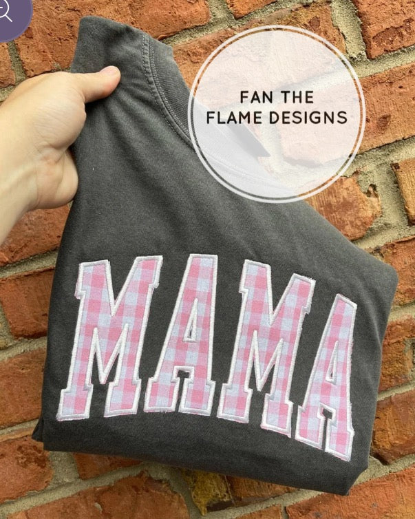 Pink Gingham Embroidered Comfort Color Tee